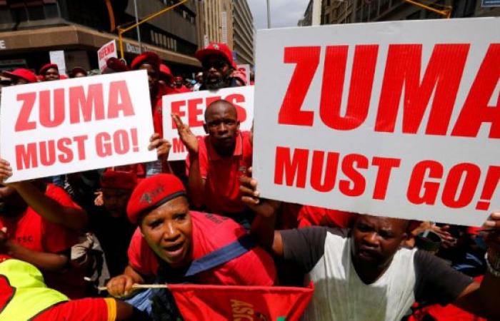 وكان زوما يتأهب لالقاء كلمته في بلومفونتين في وسط البلاد امام تجمع نظمته مركزية كوساتو النقابية القوية حين ردد الحضور اهازيج ضد زوما، وطالبوا باستقالته. وانهى المنظمون على الفور الاحتفال، الذي نظم في حديقة في المدينة، ولم يسمح لاي كان لاحقا بالقاء كلمات امام الحشد.