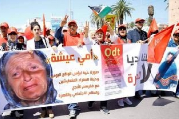 ورفع المتظاهرون بالعاصمة الرباط، لافتات وشعارات منددة بالغلاء واستفحال البطالة مطالبين بالتقسيم العادل للثروة بين أبناء الشعب، حيث رددوا "الفوسفات وزوج بحورا والشباب عايشين عيشة مقهورة (الفوسفاط وبحران والناس يعانون الفقر والقهر)"، كما ندد المحتجون باستمرار الفساد وتفشي الرشوة في الإدارات والمؤسسات الحكومية، مطالبين الحكومة بإنهاء هذه الظواهر السلبية والقضاء عليها.كما دعا المحتجون إلى تحسين الخدمات الصحية وظروف العمل بالنسبة للطبقة الشغيلة، منددين في الآن ذاته، بالتضييق الذي تفرضه الشركات واصحاب العمل على الحريات النقابية والحق في المطالبة بالحقوق الاجتماعية للمستخدمين، مشددين على ضرورة تدخل الحكومة لوضع حد لهذه الانتهاكات والممارسات التي تمتهن كرامة العمال وتحط من قيمتهم الإنسانية ودورهم المحوري في النهوض بالاقتصاد الوطني.
