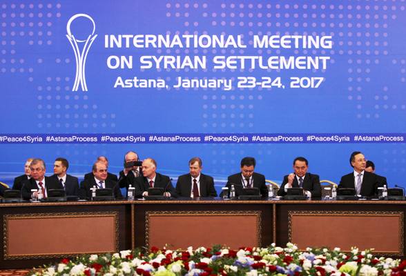 في هذا الاطار، رأى في لقاء الأستانة للفصائل المسلحة مع النظام، اتفاقاً من "ضمن اتفاقات بين موسكو وواشنطن على دفع الأطراف السورية للانخراط في حل سياسي ذلك أن واشنطن قالت مؤخرًا إنها تريد وضع قرارات مجلس الأمن الدولي موضع التنفيذ ما يعني بضع سنوات كمرحلة انتقالية لا يكون في نهايتها مكان لبشار الأسد على رأس السلطة في دمشق، لاسيما أن السلطة في دمشق باتت مدركة أن خيارها الاحتماء بحزب الله وإيران لم يعد كما كان سابقًا".