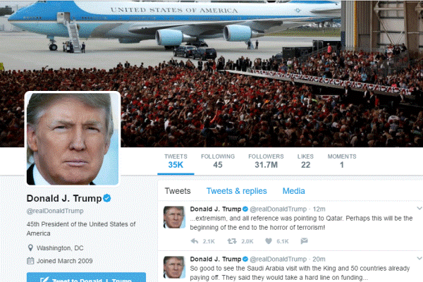 وفي أول تعليق له على الأزمة القطرية، أكد الرئيس الأميركي أنه لن يتسامح مع تمويل الأيديولوجيا المطرفة. وكتب ترمب عبر "توتير": "خلال زيارتي الأخيرة إلى الشرق الأوسط، عندما تحدثت عن ضرورة وقف تمويل الجماعات المتطرفة، أشار شركاؤنا إلى قطر".