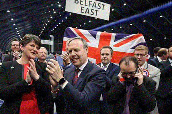 وكان الحزب الديمقراطي الوحدوي ساند خروج بريطانيا من الاتحاد الأوروبي، في حين دعا غريمه السياسي شين فين للتصويت بشأن خروج أيرلندا الشمالية من المملكة المتحدة بعد أن أيد البريطانيون الخروج من الاتحاد.