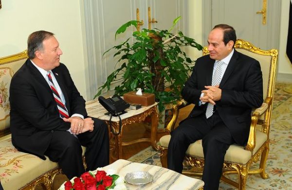 وصرح علاء يوسف المتحدث الرسمي باسم رئاسة الجمهورية أن "بومبيو" أشاد بالعلاقات الاستراتيجية بين مصر والولايات المتحدة، مشيرًا إلى حرص بلاده على تعزيزها والبناء عليها في على كافة الاصعدة، ولاسيما المجال الأمني، في ضوء الأخطار المتزايدة التي تحيط بمنطقة الشرق الأوسط والعالم.