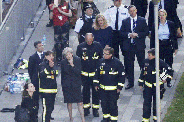 نصر المجالي: مع تقارير توقعت مقتل مئات الأشخاص، قال آخر بيان للشرطة البريطانية إن عدد قتلى حريق البرج السكني في لندن ارتفع إلى 17 قتيلا، وتفقدت رئيسة الحكومة تيريزا ماي اليوم الخميس، موقع الحريق المأسوي وتعهدت إجراء تحقيق كامل.