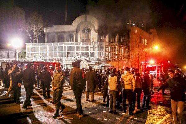 ونقلت وكالة الأنباء السعودية الرسمية (واس) عن مصدر مسؤول في وزارة الخارجية قوله إن "السلطات الإيرانية استمرت في مماطلتها ورفضها استكمال الإجراءات المتعلقة بالتحقيق في حادثة اقتحام سفارة المملكة العربية السعودية في طهران وقنصليتها العامة في مشهد، رغم مضي أكثر من سنة ونصف، وعمدت إلى الابتزاز بغرض الحصول على امتيازات دبلوماسية داخل المملكة في ظل قطع العلاقات بين البلدين".