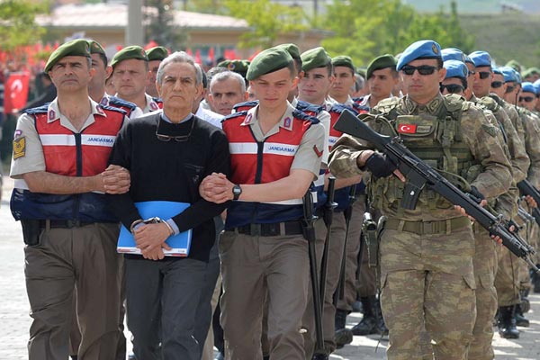 وأمام كاميرات التلفزيون والحشود في الخارج، مشى بعض الموقوفين في خط طويل وصولًا إلى مقر المحكمة خارج أنقرة، ورافق عنصران من الحرس التركي كلًا منهم، إضافة إلى جندي مسلح. وطالب بعض المحتشدين في الخارج بالحكم عليهم بالإعدام، مع العلم أن هذه العقوبة ألغيت في تركيا العام 2004.