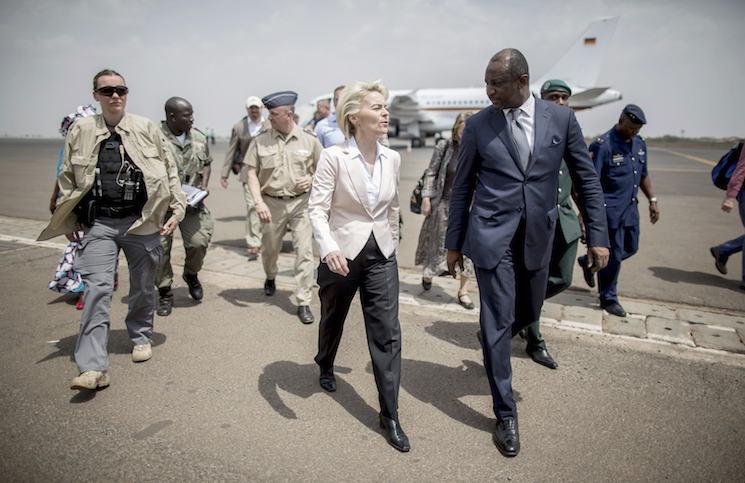 وصرحت فون دير ليين للصحافة في ختام لقاء مع الرئيس المالي ابراهيم بوبكر كيتا "بحثنا مشاريع مجموعة دول الساحل الخمس (تشاد، النيجر، مالي، بوركينا فاسو، موريتانيا)، وخصوصا المبادرة الفرنسية الالمانية لدعم القوة المشتركة الخماسية لدول الساحل وتحسين تدريب قواتها".