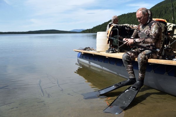 وفي أحدث صيحة إعلامية، نشر المكتب الصحافي للكرملين فيديو يظهر الرئيس فلاديمير بوتين وهو يصطاد السمك تحت الماء في بحيرة في جمهورية تيفا شرق روسيا.