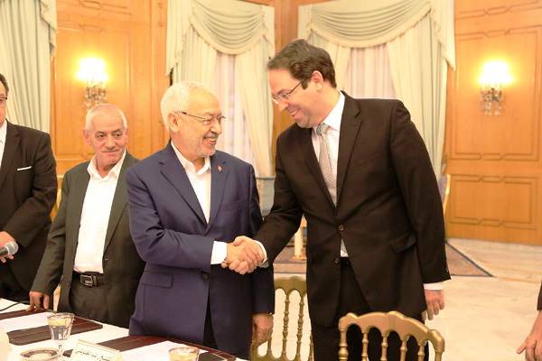 وفي 13 يوليو 2016، تمّ إمضاء ما يُعرف في تونس بـ"وثيقة قرطاج" من طرف 9 احزاب و3 منظمات مجتمعية تضمنت عددا من الملفات وقع الإتفاق على معالجتها من طرف حكومة وحدة وطنية، وهي حكومة يوسف الشاهد التي شُكلت إثر الإمضاء على تلك الوثيقة التي كانت في البداية مبادرة من طرف الرئيس الباجي قائد السبسي كان قد أعلنها في الثاني من يونيو 2016 لاخراج البلاد من أزمة اقتصادية واجتماعية حادة وأُقيل على إثرها رئيس الحكومة السابق الحبيب الصيد.