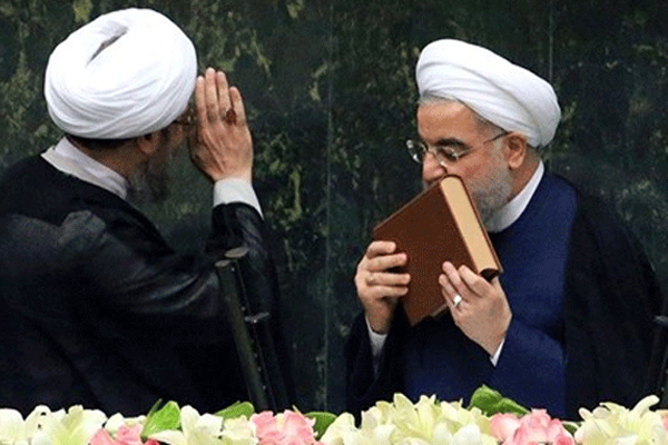واقسم الرئيس الايراني الجديد امام القرآن والشعب الايراني بان يصون الدين الرسمي ونظام الجمهورية الاسلامية في ايران ويلتزم بدستور البلاد وان يستخدم كل طاقاته وصلاحياته لاداء مسؤولياته.