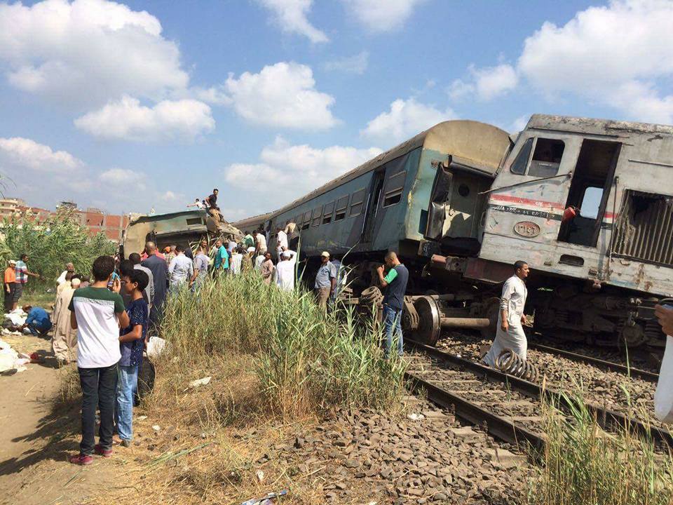 وافاد مصورو فرانس برس ان عربة من احد القطارين صعدت فوق عربة اخرى نتيجة شدة التصادم، مشيرين الى ان عربتين انفصلتا عن القطار وسقطتا على الارض بجوار القضبان في احد الحقول. وكان رئيس الوزراء شريف اسماعيل كلف مساء الجمعة وزارة البترول وشركة المقاولين العرب (حكومية) توفير المعدّات اللازمة للتعامل مع تداعيات الحادث وسرعة رفع العربات.