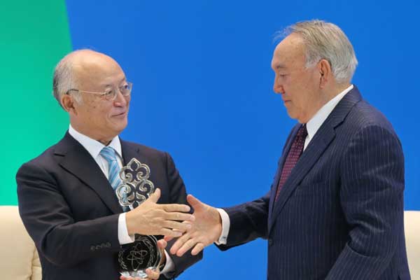 واستضافت كازاخستان الواقعة في آسيا الوسطى مباحثات بشأن البرنامج النووي الإيراني في العام 2013. ووصفت الوكالة الدولية للطاقة الذرية المصرف، الذي لا يحتوي بعد على أي وقود، بأنه "حجر أساس رئيس" يمنح الثقة للدول بخصوص توافر الوقود النووي.
