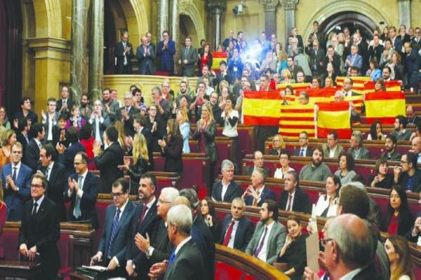 برشلونة: أعلن برلمان كاتالونيا الجمعة ان الاقليم بات "دولة مستقلة تتخذ شكل جمهورية" في قطيعة غير مسبوقة مع اسبانيا بعد أزمة سياسية حادة.