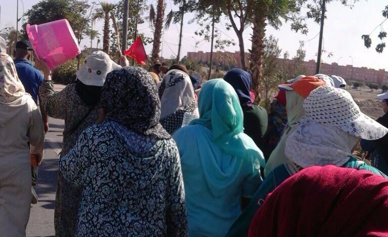 مراكش: في سابقة من نوعها، خرجت نساء أغلبهن ربات بيوت بجماعة حربيل التابعة لمدينة مراكش (منطقة شبه قروية)، في مسيرة احتجاجية جابت شوارع المنطقة يطالبن من خلالها بتوفير المرافق والخدمات الإجتماعية.