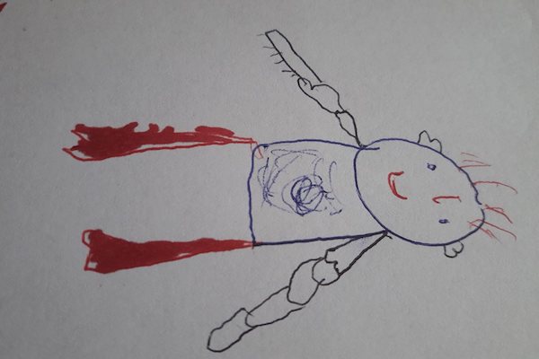 وأضافت أديب أنها طلبت من الطفل أن يرسم شيئًا فرسم أباه وهو يمسك بيده اليمنى سكينًا وبيده اليسرى سلسلة حديدية، تعبيرًا عن معاناته مما يتعرض له من وحشية.