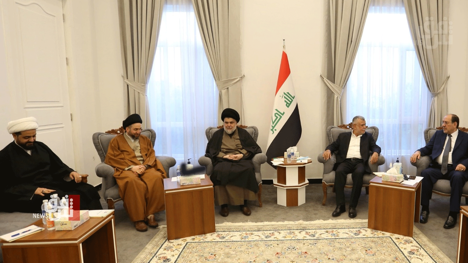 قادة الاطار الشيعي خلال اجتماع لهم الاثنين 21 مارس 2022 لمناقشة انقاد جلسة البرلمان لانتخاب رئيس البلاد (تويتر)