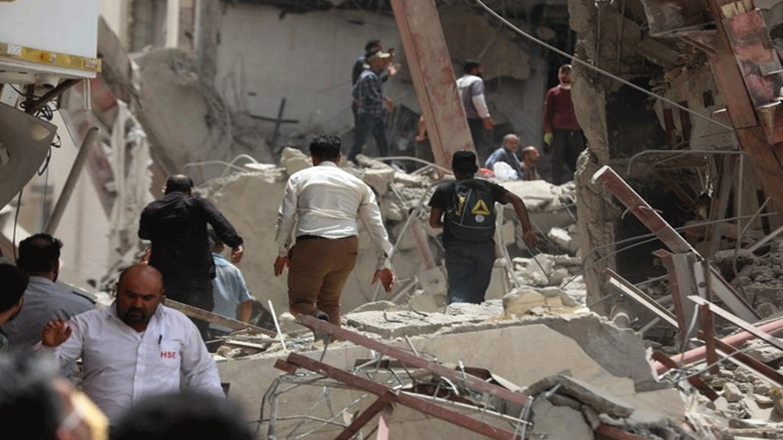 وتواجد العشرات في المكان غالبيتهم عمال انقاذ وضعوا خوذا حمراء، بينما عملت آليات ثقيلة من جرافات ورافعات على إزالة الركام لتسهيل البحث عن أشخاص يحتمل وجودهم تحت الأنقاض.