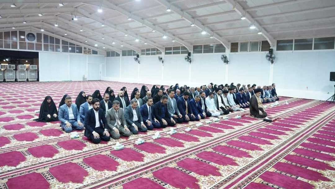 الصدر يؤم مساء الاربعاء 15 يونيو 2022 بمقره في النجف نواب وقادة تياره السياسي لصلاة المغرب والعشاء