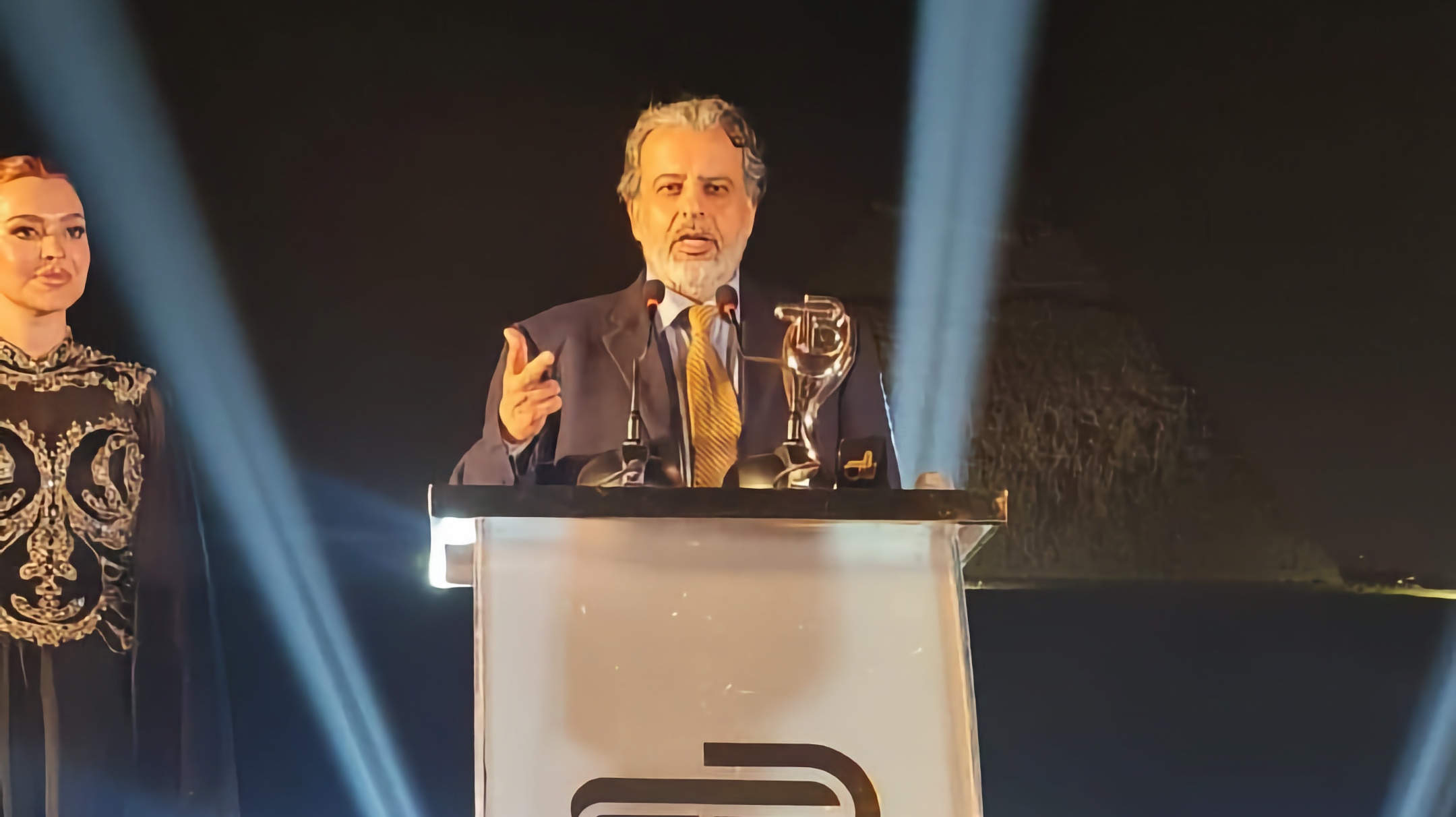 وقال الخميس خلال حفل تكريمه، الذي أُقيم عند سفح الهرم وبحضور العديد من نجوم مصر في مختلف المجالات : “أن يأتي التكريم من مصر فهو أمر مختلف تمامًا”، مشيرًا إلى أن مصر بتاريخها ونجومها وإبداعها تظل هي القيادة والريادة وصمام الأمان للأمة العربية ككل.