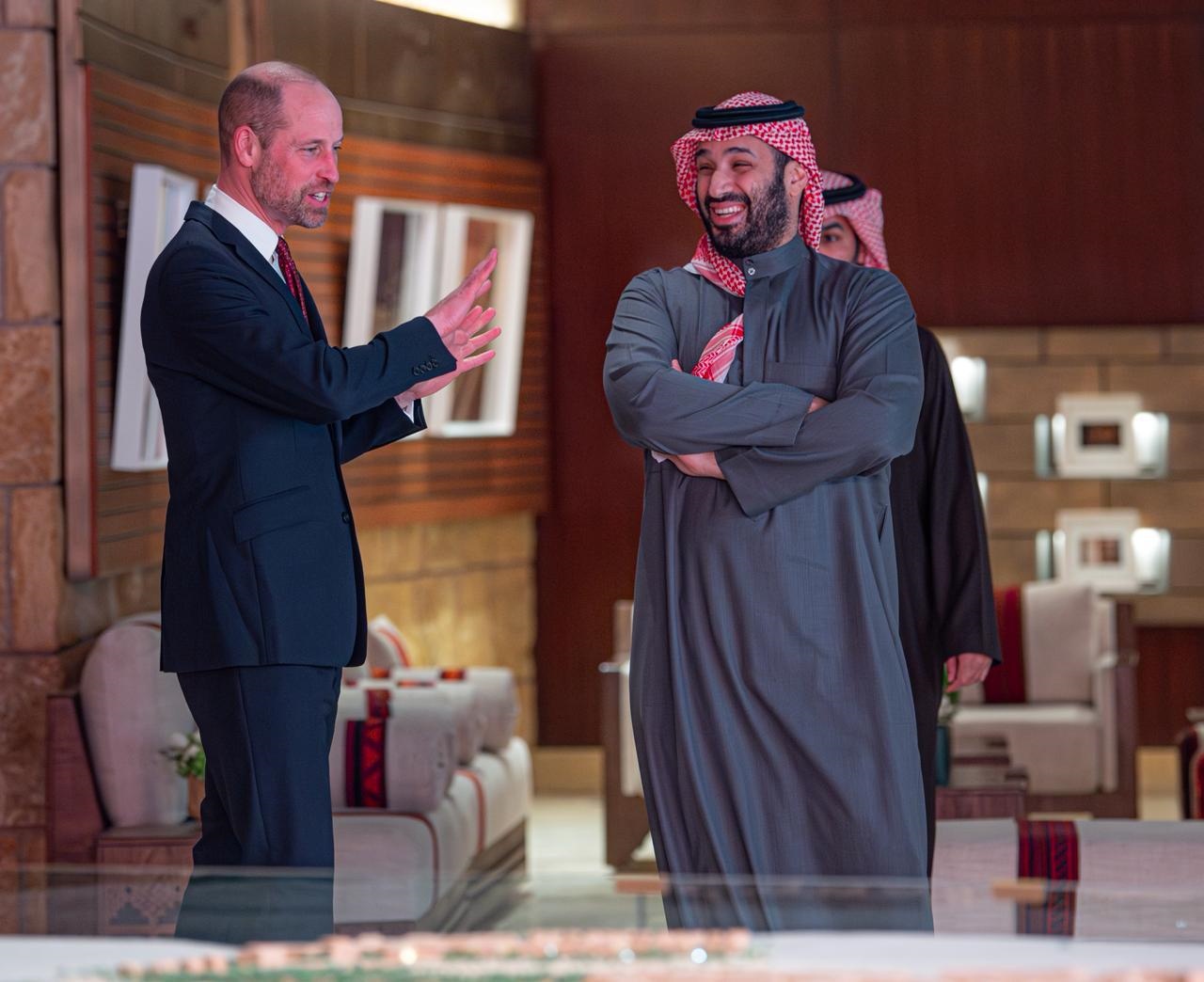 بدأ الأمير ويليام زيارة رسمية إلى المملكة العربية السعودية، بناءً على طلب الحكومة البريطانية، لتعزيز العلاقات مع أحد أقرب حلفاء المملكة المتحدة في الشرق الأوسط، وأحد أبرز الشخصيات الدينية والسياسية المؤثرة في المنطقة، أجرى ولي العهد محادثات مع ولي العهد السعودي الأمير محمد بن سلمان، تلاها عشاء خاص في مزرعته الواقعة في أحد مواقع التراث العالمي لليونسكو في العاصمة السعودية، وتأمل لندن والرياض أن يتطور التواصل بين الرجلين، اللذين سبق لهما اللقاء، وأن تُرسخ أي علاقة ناشئة بين الأميرين ملامح العلاقات الأنجلو-سعودية لعقود قادمة.