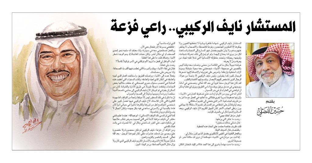 أذكر أنه في يوم من الأيام ازدادت على ضغوط العمل في الأنباء وازرتها ضغوط أسرية أخرى فتلاقى ما أعانيه في العمل مع ما أمر به من ظروف اجتماعية الأمر الذي دفعني إلى تقديم استقالتي وبعد أيام قلائل على انقطاعي عن العمل إثر تقديم الاستقالة، إذا بهاتفي يون وعلى الجانب الآخر كان النبيل الكريم الاخ نايف الركيبي وبعد.