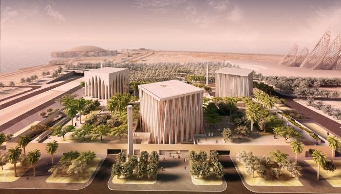 عرض فني لمجمع بيت العائلة الإبراهيمية المستقبلي في أبو ظبي. (Abu Dhabi Government Media Office)
