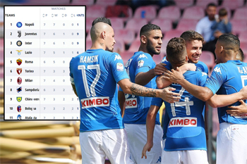 وبفضل الانتصارات السبعة التي حققها نابولي، فإنه اصبح يتصدر الترتيب العام للدوري الإيطالي برصيد 21 نقطة وبفارق نقطتين عن ملاحقيه يوفنتوس وإنتر ميلان.