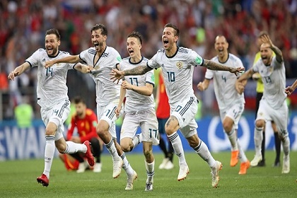 كرس المنتخب الروسي لكرة القدم عقدة البلد المضيف لدى نظيره الاسباني عندما تغلب عليه 4-3 بركلات الترجيح بعد انتهاء الوقتين الاصلي والاضافي لمباراتهما في الدور ثمن النهائي لمونديال 2018 بالتعادل 1-1، وحقق بالتالي انجازا تاريخيا ببلوغه الدور ربع النهائي للمرة الاولى في تاريخه بعد انهيار الاتحاد السوفياتي.