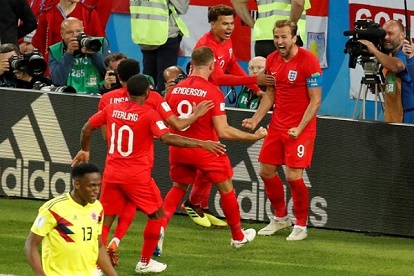 وبدت انكلترا في طريقها الى حسم اللقاء بعدما تقدمت بهدف لهاري كاين (57 من ركلة جزاء) عزز به صدارته لترتيب الهدافين مع ستة أهداف. الا ان كولومبيا التي كانت تبحث عن معادلة انجاز 2014 حين وصلت الى ربع النهائي قبل الخروج على يد البرازيل المضيفة، خطفت التعادل اثر ركنيتها الأولى في اللقاء عبر ييري مينا (3+90).