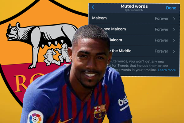 ونشر الحساب تغريدة قال فيها انه قام بتفعيل نظام حظر الكلمات والجمل التي تحتوي على اسم اللاعب البرازيلي مالكوم والتي ستظهر على الصفحة الرسمية لنادي وروما.