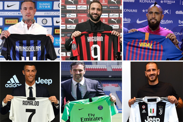 وكان نادي يوفنتوس الإيطالي قد تعاقد مؤخراً مع المهاجم البرتغالي كريستيانو رونالدو من نادي ريال مدريد الإسباني مقابل 112 مليون يورو بعقد يمتد لثلاثة اعوام ، رغم انه يبلغ من العمر 34 عاماً ، كما تعاقد نادي باريس سان جيرمان مع الحارس الإيطالي جيان لويجي بوفون الذي يبلغ 40 عاماً من نادي يوفنتوس في صفقة انتقال حر وبعقد يمتد لعامين ، فيما ابرم نادي برشلونة الإسباني صفقة لاعب الوسط التشيلي ارتورو فيدال من نادي بايرن ميونيخ الألماني مقابل 20 مليون يورو لثلاثة مواسم رغم وصول اللاعب إلى سن 32 عاماً .