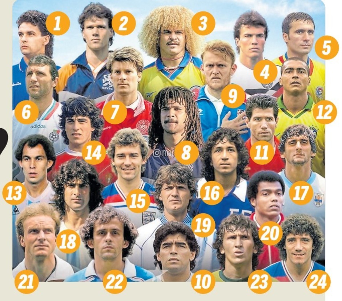 وضمت الصورة المركبة قائمة من النجوم الذين كان لهم صيت كبير، توّج بعضهم بجائزة "الكرة الذهبية" على رأسهم الفرنسي ميشال بلاتيني الذي أحرزها 3 اعوام متتالية ، و الهولندي رود خوليت الذي حققها عام 1987 ، كما ضمت القائمة البلجيكي إنزو شيفو و الألماني لوثر ماتيوس الذي عجز عن مراقبته في نهائي مونديال 1986 ، كما شملت أيضاً الألماني كارل-هاينتس رومنيغه والبرازيليين زيكو و روماريو و الإيطالي روبرتو باجيو ، والهولندي ماركو فان باستن ، والكولمبي كارلوس فالديراما و الإنكليزي كيفن كيغان ، والأرجنتيني ماريو كيمبس الذي انطفأت شعلته ببروز نجم مارادونا.
