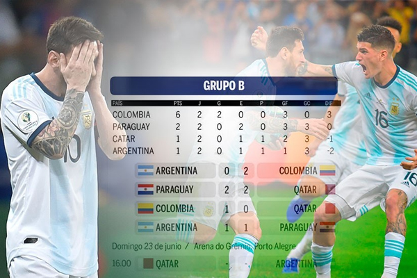 تواجه الأرجنتين بقيادة النجم ليونيل ميسي موقفاً حرجاً بإمكانية إقصائها مبكراً من بطولة كوبا أميركا بعد خسارتها أمام كولومبيا بهدفين نظيفين ثم تعادلها سلبياً مع البارغواي، ليتوجب عليها الانتصار بنتيجة كبيرة في المباراة المصرية امام منتخب قطر.