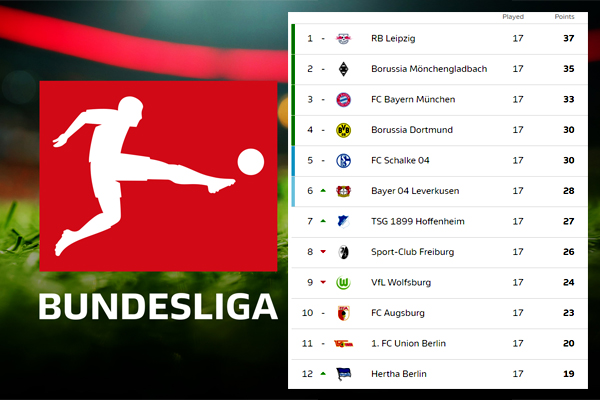 حقق نادي لايبزيغ نتائج جيدة و متميزة، مما جعله ينهي مرحلة الذهاب في صدارة جدول الترتيب ، محرزاً لقب بطل الشتاء لأول مرة منذ سنوات ، بعدما نجح في خطف الصدارة بفارق نقطتين عن ملاحقه المباشر بوروسيا مونشنغلادباخ الذي صنع هو الآخر المفاجأة بهذا الترتيب.
