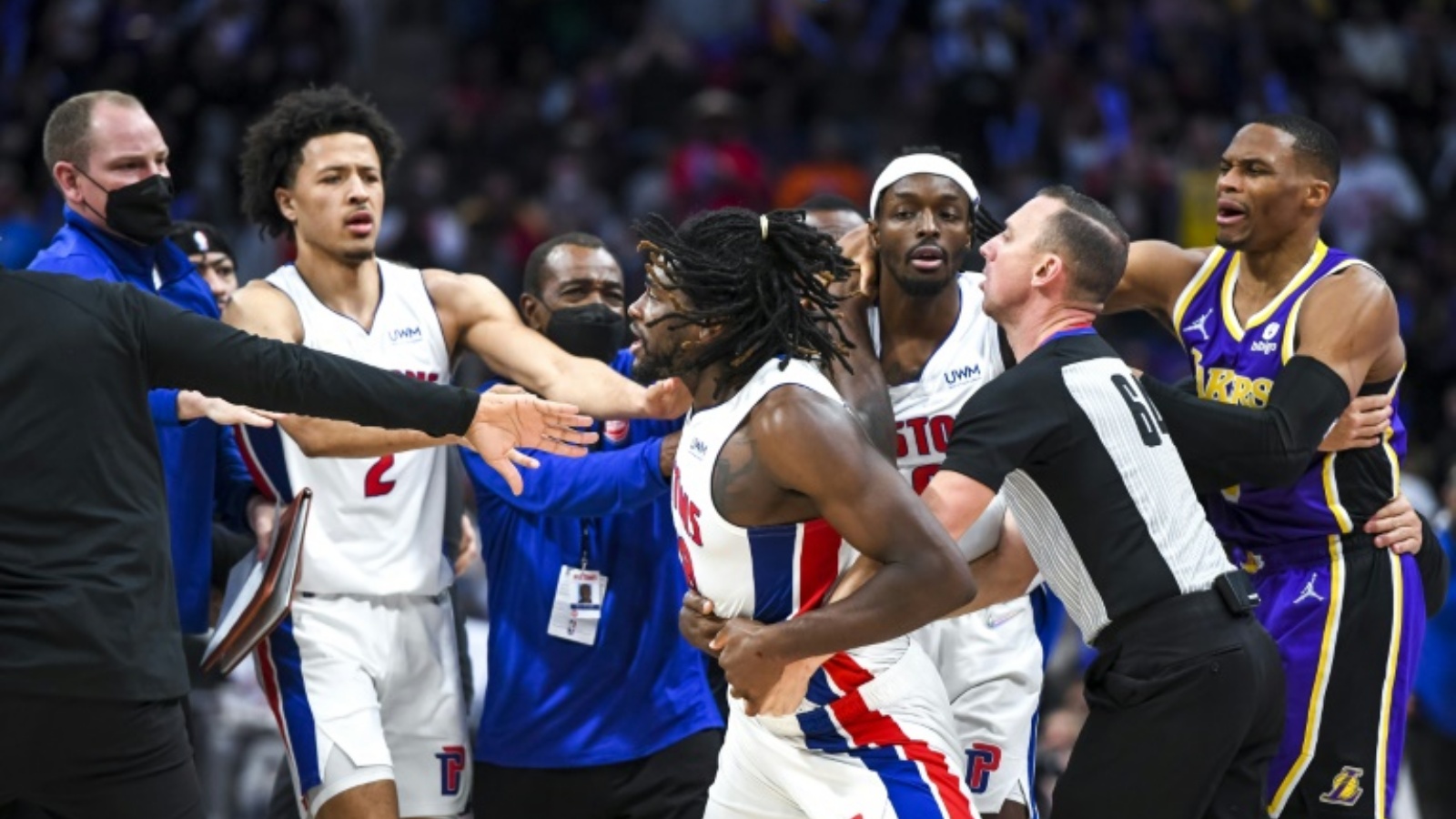 ووقعت المشاجرة قبل 9:19 دقائق من نهاية الربع الثالث عندما كان ليكرز متأخرًا 79-67. وكان أبطال 2020 دخلوا اللقاء بعد ثلاث هزائم متتالية ومجموع تسع في الموسم، مقابل ثمانية انتصارات.