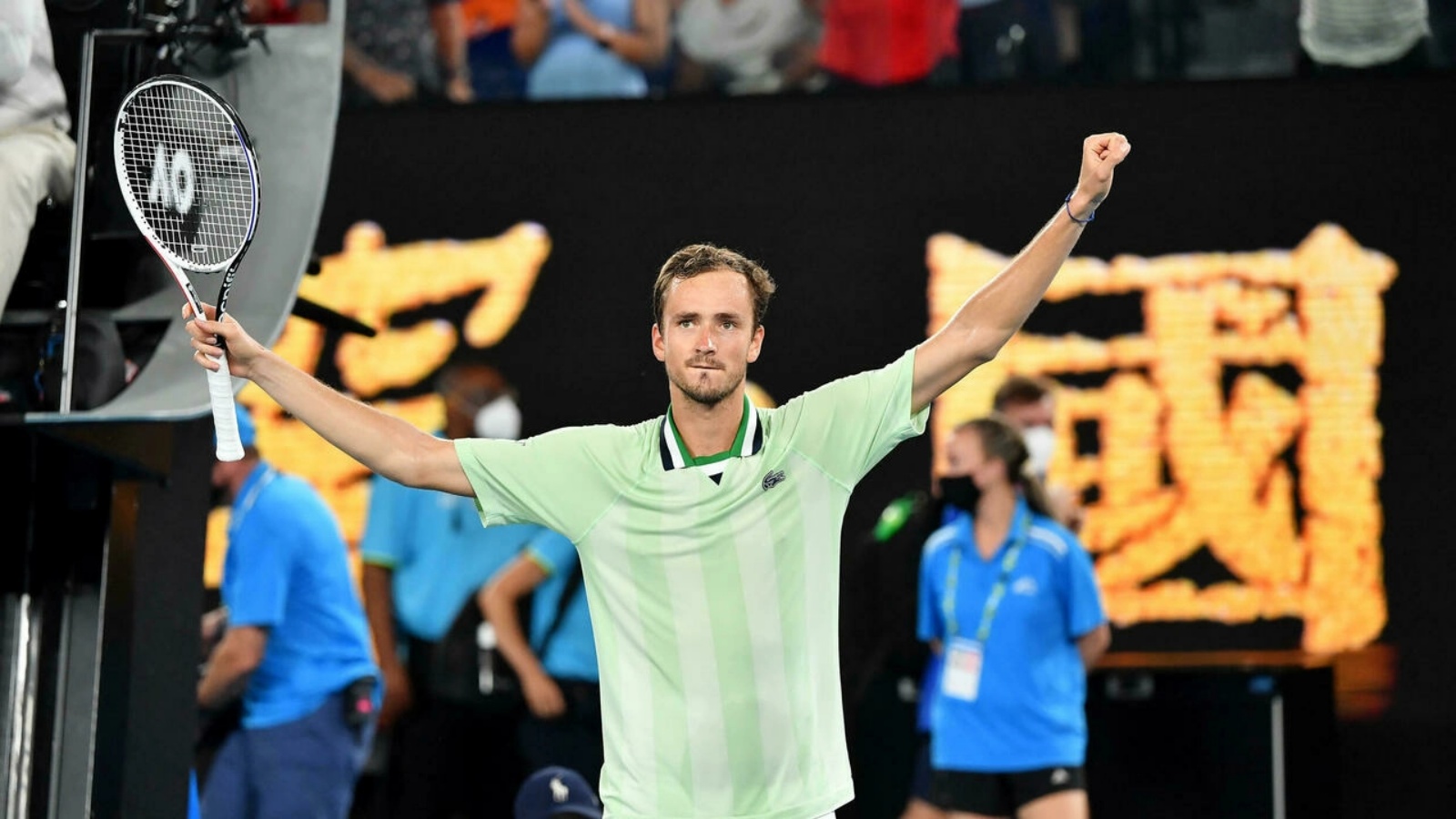 وحسم مدفيديف، وصيف العام الماضي، المباراة بخمس مجموعات مشوّقة 6-7 (4-7) و3-6 و7-6 (7-2) و7-5 و6-4 في 4 ساعات و42 دقيقة، ليكمل مشواره في بطولة يغيب عنها المصنف الأول عالمياً الصربي نوفاك ديوكوفيتش لترحيله من أستراليا بسبب عدم تلقيه اللقاح المضاد لفيروس كورونا.