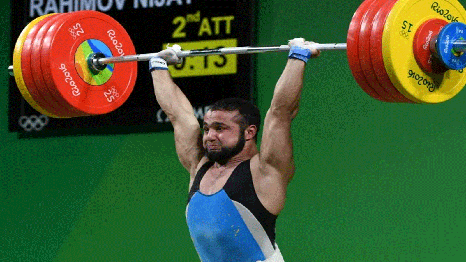 وفاز رحيموف البالغ من العمر 28 حاليا بالميدالية الذهبية الأولمبية لفئة أقل من 77 كلغ مع رقم قياسي عالمي في ذلك الوقت برفعه 214 كلغ.