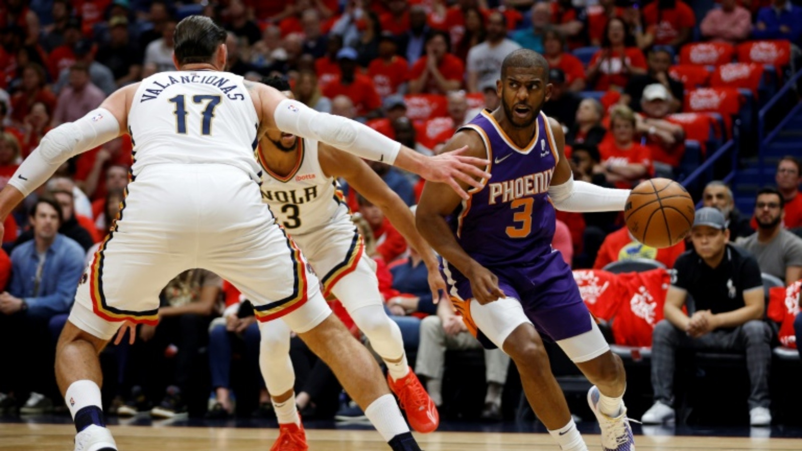 لوس أنجليس: حقّق صانع الألعاب كريس بول نسبة تسديد مثالية ليقود فينيكس صنز لحسم السلسلة أمام نيو أورليانز بيليكانز ويبلغ نصف نهائي المنطقة الغربية في دوري كرة السلة الاميركي للمحترفين، لملاقاة دالاس مافريكس الذي أنهى مهمته ضد يوتا جاز بصعوبة، فيما حجز أيضًا فيلادلفيا سفنتي سيكسرز مقعده في نصف نهائي الشرقية على حساب تورونتو رابتورز الخميس.
