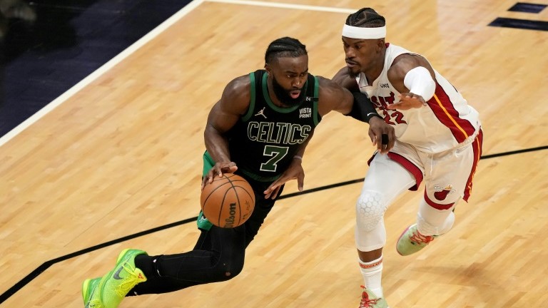 ميامي : سجّل جايلن براون 25 نقطة وأضاف زميله جايسون تايتوم 22 أخرى ليقترب فريق بوسطن سلتيكس التأهل إلى نهائي الدوري الأميركي للمحترفين في كرة السلة، بفوزه على ميامي هيت 93 80 في المباراة الخامسة لنهائي المنطقة الشرقية.