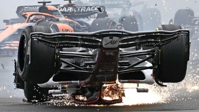 خرج السائق البالغ 23 عاماً بأمان من سيارته دون اية اصابات، بفضل هيكل حماية قمرة القيادة "هالو"، المثير للجدل لدى اعتماده والمصنوع من التيتانيوم، وذلك بعد وقت قصير من إنقاذه سائقاً في سباق فورمولا 2.