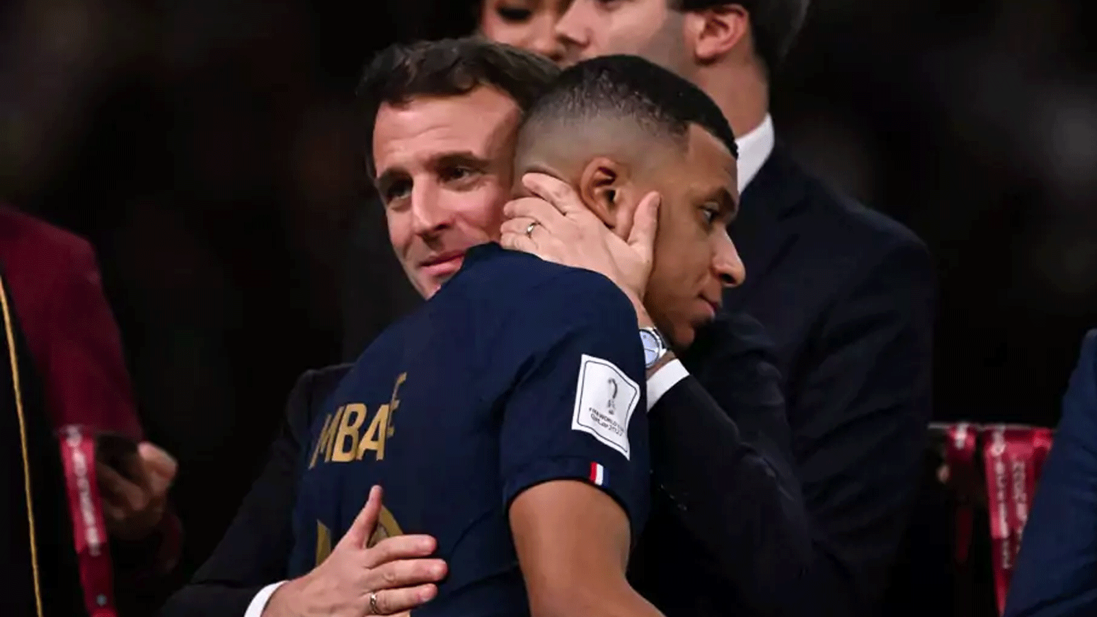 وبعد الهزيمة، حاول الرئيس الفرنسي مواساة اللاعب الفرنسي كيليان مبابي الذي بقي واجماً.