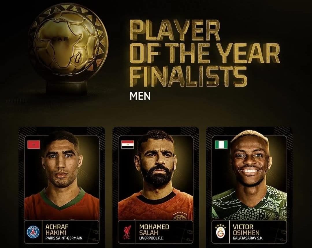 بالنسبة للمرشحين للفوز بجائرة أفضل لاعب إفريقي، شهدت القائمة حضور المغربي أشرف حكيمي، مدافع باريس سان جيرمان الفرنسي، إلى جانب المصري محمد صلاح (ليفربول)، والنيجيري فيكتور أوسيمين (غلطة سراي).