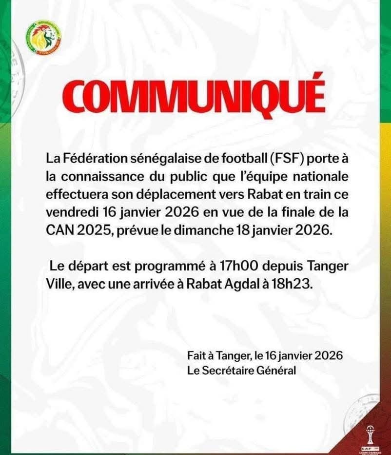 بيان للاتحاد السنغالي يخبر فيه جماهيره بمكان وتوقيت وصول المنتخب السنغالي إلى الرباط