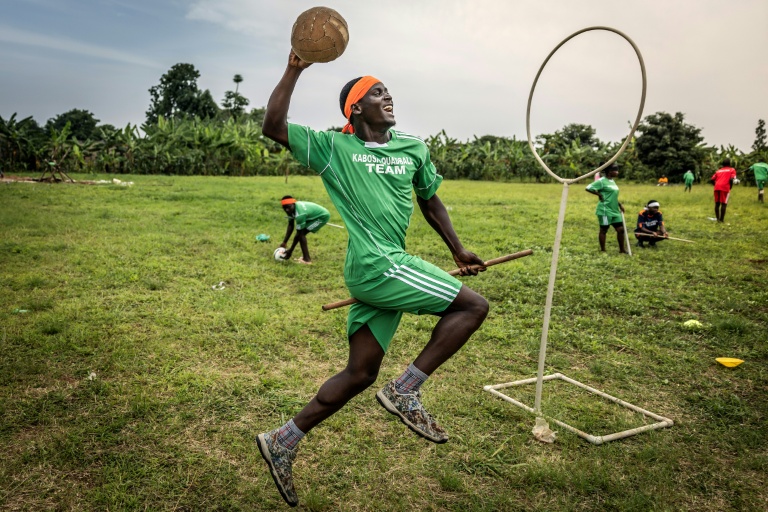 في فسحة محاطة بأشجار الموز، على بُعد حوالي 135 كيلومترا من العاصمة كمبالا، يركض اللاعبون وهم يحملون عصيًّا بين أرجلهم بدلا من المكانس السحرية.