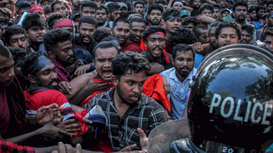 أطلقت الشرطة في سريلانكا الغاز المسيل للدموع لتفريق آلاف الطلاب الذين حاولوا اقتحام منزل الرئيس غوتابايا راجاباسكا، فيما عرضت الحكومة فتح قنوات حوار مع المتظاهرين المطالبين باستقالته لتهدئة الأوضاع.
