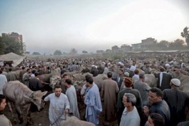 تشهد بلدة أشمون في منطقة الدلتا في مصر إقبالاً شديدًا من أصحاب وتجار الماشية من البلدات المجاورة لبيع وشراء أضاحي العيد، لكن التكلفة العالية هذه السنة جعلت السوق ساحة للمشاهدة أكثر منها للشراء.