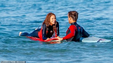 رصدت عدسات الباباراتزي المغنية الكولومبية شاكيرا خلال رحلة الى شواطيء كانتابريا بإسبانيا مع طفليها ساشا وميلان وهي تبتسم برفقة مدرب ركوب أمواج غامض، وذهب البعض للتكهن بانها تجاوزت بيكية وتواعد هذا الش