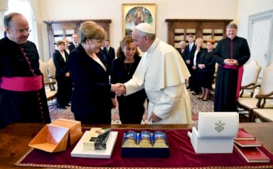 استقبل البابا فرنسيس السبت المستشارة الالمانية انغيلا ميركل وبحث معها التطورات على الساحة الدولية وبينها "التهديد الارهابي والتغيرات المناخية"، كما اعلن الفاتيكان.