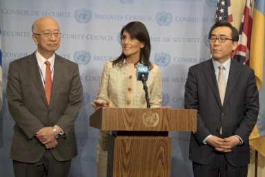 قالت السفيرة الأميركية لدى الأمم المتحدة نيكي هالي الثلاثاء إن واشنطن وبكين، الحليف الدبلوماسي والعسكري لبيونغ يانغ، تعملان معًا في مجلس الأمن على قرار لفرض عقوبات جديدة على كوريا الشمالية.