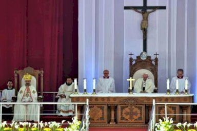 ترأس بابا الفاتيكان فرانسيس في ملعب الدفاع الجوي بالقاهرة قداسا حاشدا، السبت، تحت شعار "بابا السلام في مصر السلام " بحضور 25 ألف من الكاثوليك المصريين.