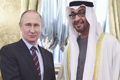 تحادث الرئيس الروسي فلاديمير بوتين في موسكو، اليوم الخميس، مع ولي عهد أبو ظبي الشيخ محمد بن زايد ال نهيان حول العديد من الملفات المهمة والمستجدات على الساحتين الإقليمية والدولية.